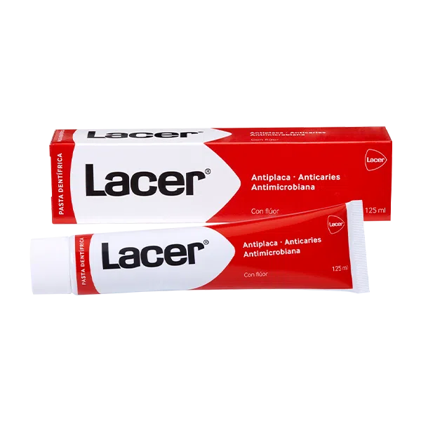 Gracias a su completa formulación y su acción antimicrobiana, la pasta de dientes Lacer proporciona una protección integral y ayuda a mantener la salud bucodental de tu boca. Lacer pasta dentífrica contiene 2.500 ppm de ion fluoruro, previene la placa bacteriana (antiplaca), combate la flora causante de la caries y refuerza el esmalte y la dentina proporcionando una protección integral de tu boca